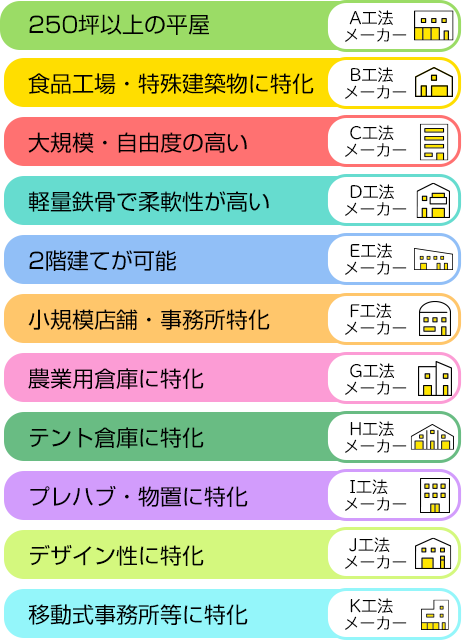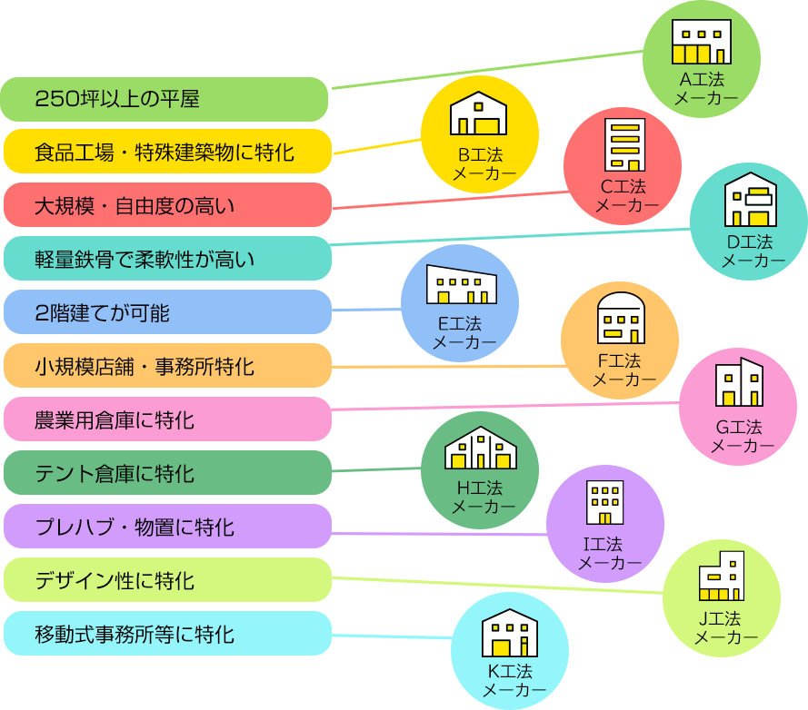 様々なシステム建築の工法を取り扱い、 お客様ごとに適切な工法・メーカーでご提案させていただきます。